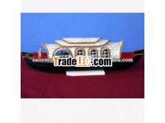 The innovative house boatis made of wooden planks joined and stitched together using coconutfibre ropes, usually the wood used will be wideband, teak wood,rose wood, the roof covering is made of bamboo leaves. The out sideof the boat is painted using spar varnish. The modern type of houseboat have all creative comforts like a bedrooms, dining areas,beautiful balcony for angling. Totally this house boat isfully handmade product.